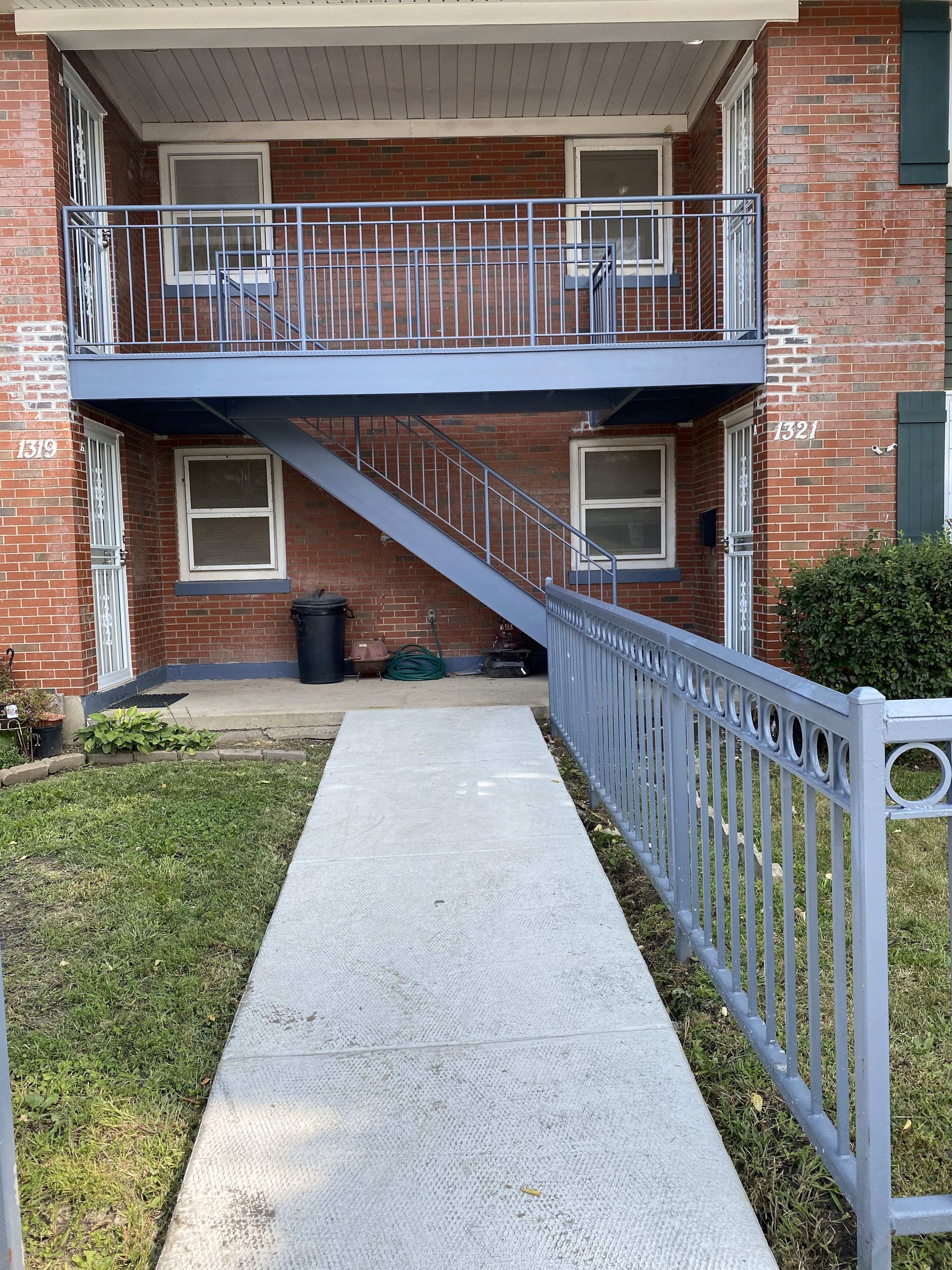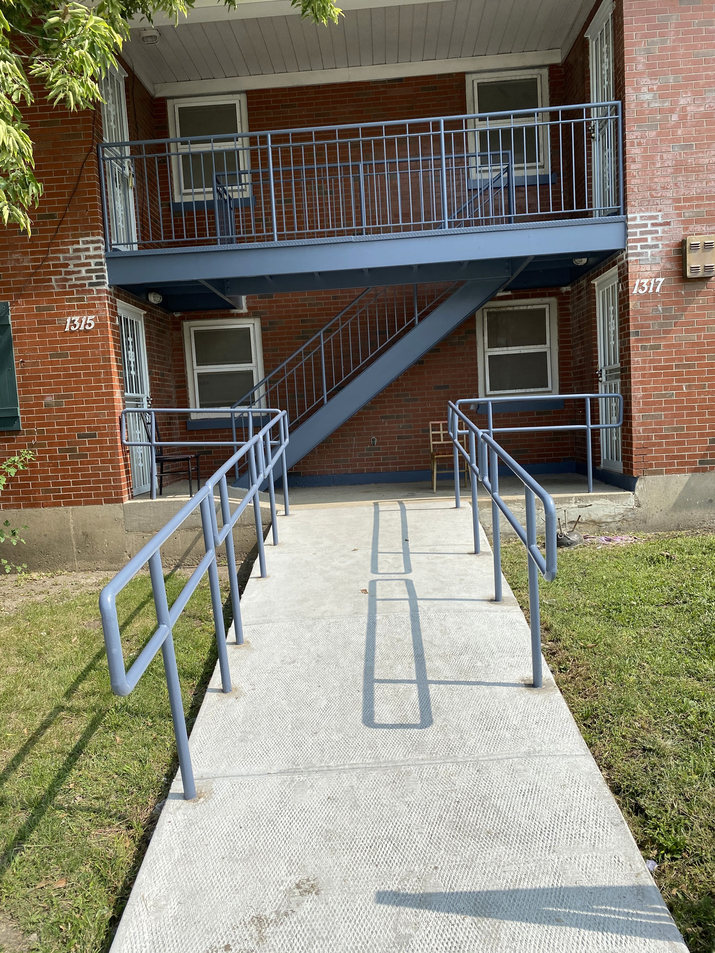Sunrise Apartments was identified as a high‑priority exterior rehabilitation project due to significant deterioration across multiple staircases and concrete porch structures. Angstrom was contracted by the Housing Authority of Cook County to fully address the structural and safety concerns across the complex. Upon assessment, several stair treads were severely rusted, handrails were unstable, and concrete pads were cracked, uneven, and hazardous for residents.